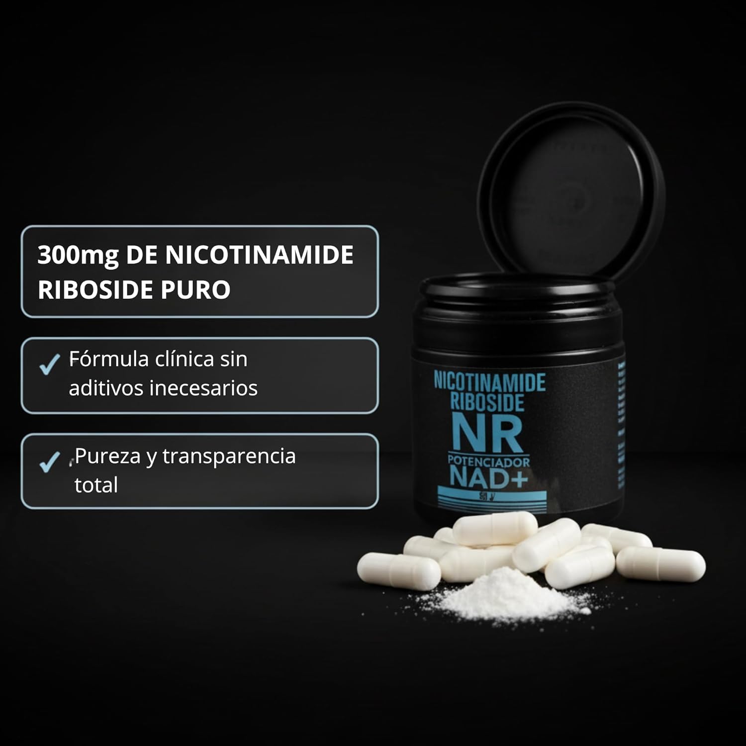 NAD+ PURO Y SIN ADITIVOS Fórmula con nicotinamide riboside, precursor de NAD+, en cápsulas limpias, sin aditivos y de alta estabilidad. Ideal para quienes buscan un suplemento NAD+ fiable y transparente.