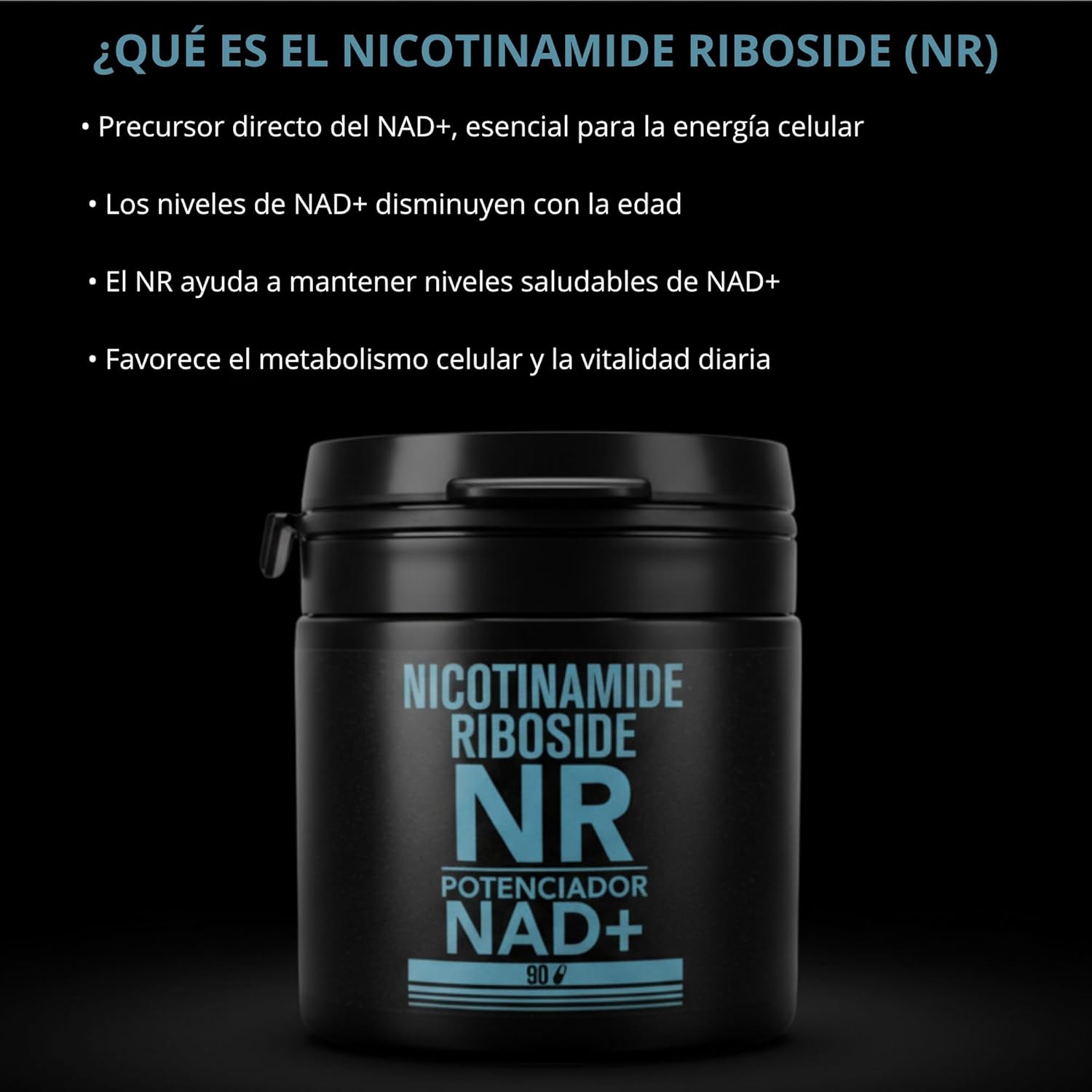 - 5️⃣ CALIDAD NR – NICOTINAMIDE RIBOSIDE Contiene NR suplemento, forma avanzada precursora de NAD+, presente en productos como nad el más vendido o nad mejor valorado, pero en versión pura y europea.