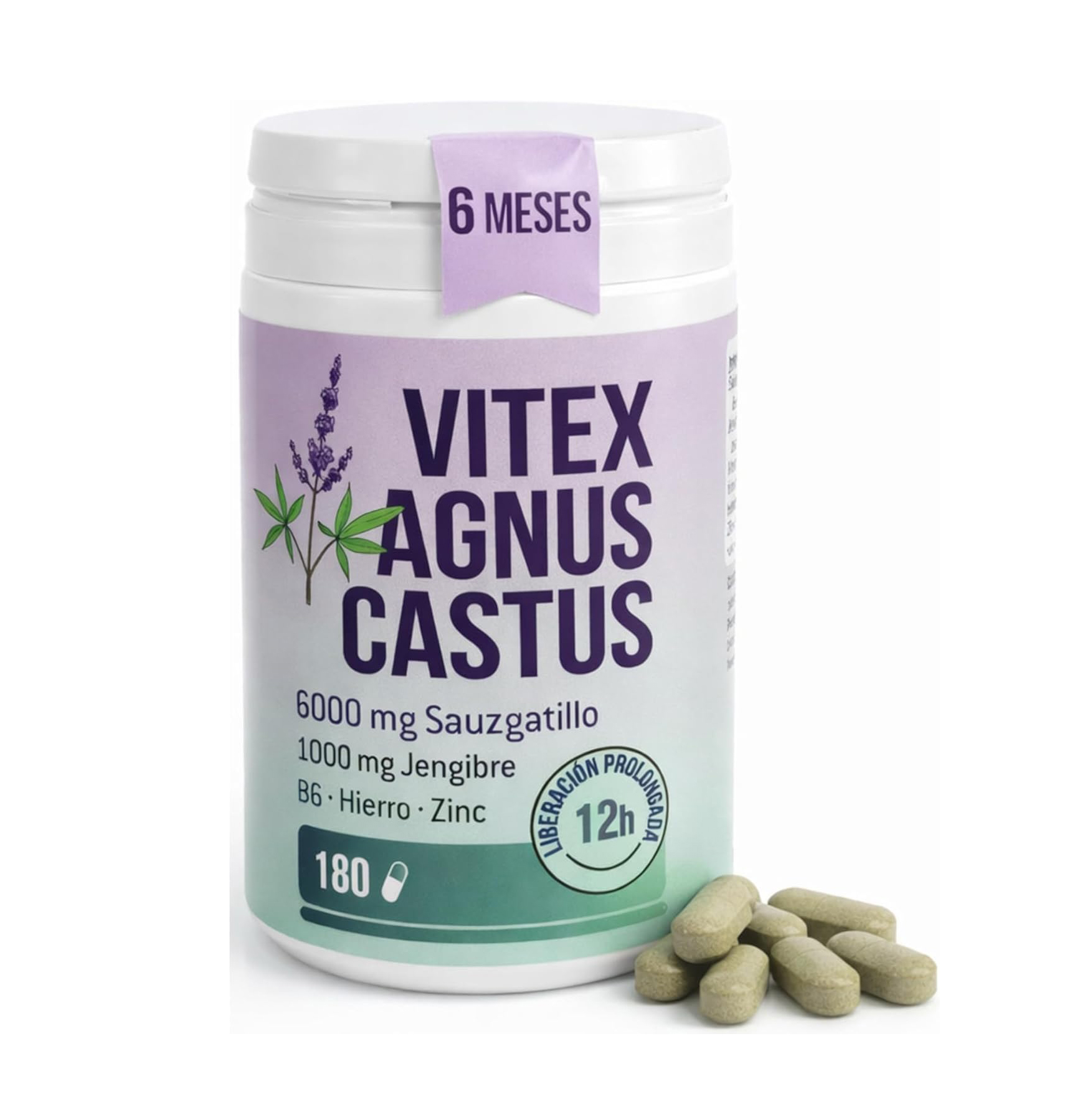 Este suplemento de Vitex agnus castus ha sido desarrollado para mujeres que buscan un enfoque más avanzado y constante del bienestar femenino. A diferencia de los productos convencionales de Vitex o agnus castus, su fórmula combina alta concentración real, extractos estandarizados y tecnología de liberación prolongada. Cada comprimido aporta 400 mg de sauzgatillo con una relación de extracto 15:1, equivalente a 6000 mg de planta, lo que lo sitúa por encima de la mayoría de vitex cápsulas del mercado. Gracias a su liberación controlada durante 12 horas, acompaña el ciclo femenino a lo largo del día con una toma cómoda de 1 comprimido diario.